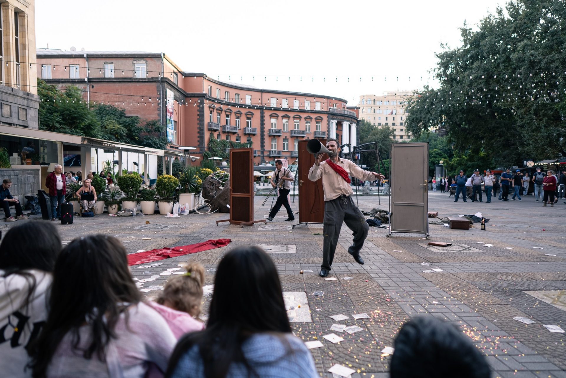 Իսկ արդեն հոկտեմբերի 2-ին Շառլ Ազնավուրի անվան հրապարակում տեղի ունեցավ Արխանգելսկի Երիտասարդական Թատրոնի «Դռներ» բացօթյա ներկայացումը: «Դռները» զվարճալի, պարզ ներկայացում է, որում խաղում են երեք դերասաններ: Դուռը խաղում է ոչ միայն ուտիլիտարիստական, այլև մի տեսակ փիլիսոփայական խորհրդանշի դեր: Այն ծառայում է, որպես տարբեր ազգությունների, մտածելակերպի և կրոնի մարդկանց բաժանող սահման: Արխանգելսկի երիտասարդական թատրոնն արդեն 46 տարի է, ինչ հաջողությամբ աշխատում է բացօթյա թատրոնի և դրամատիկական թատրոնի ոլորտում։