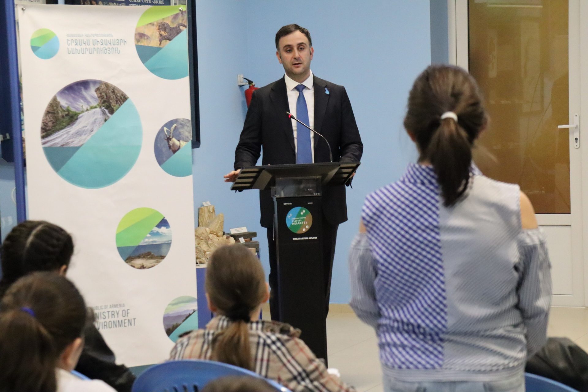 Հանդիպման ավարտին նախարարի տեղակալն աշակերտներին հրավիրել է մասնակցելու առաջիկայում նախատեսված շաբաթօրյակին և ծառատունկին՝ հիշեցնելով, որ շրջակա միջավայրի առողջությունը կախված է մեզնից և յուրաքանչյուրիս ամենափոքր ջանքը որոշիչ է օր առաջ ավելի առողջ շրջակա միջավայր ունենալու համար: