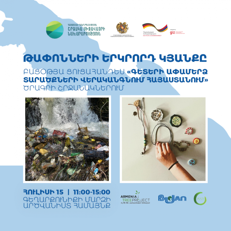 Ս.թ. հուլիսի 15-ին, ժամը 11:00-15:00-ն Գերմանիայի միջազգային համագործակցության ընկերության (ԳՄՀԸ), ՀՀ շրջակա միջավայրի նախարարության և ՀՀ տարածքային կառավարման և ենթակառուցվածքների նախարարության կողմից համատեղ իրականացվող «Գետերի ափամերձ տարածքների վերականգնում Հայաստանում» ՔՈՎԻԴ-19-ի արձագանքման ծրագրի շրջանակներում Գեղարքունիքի մարզի Արծվանիստ համայնքում տեղի է ունենալու «Թափոնների երկրորդ կյանքը» խորագրով բացօթյա ցուցահանդեսը: Ցուցահանդեսի ընթացքում ցուցադրվելու են ծրագրի շրջանակներում իրականացված դասընթացների ընթացքում … Շարունակել կարդալ Թափոնների երկրորդ կյանքը. ցուցահանդես «Գետերի ափամերձ տարածքների վերականգնում Հայաստանում» ծրագրի շրջանակներում