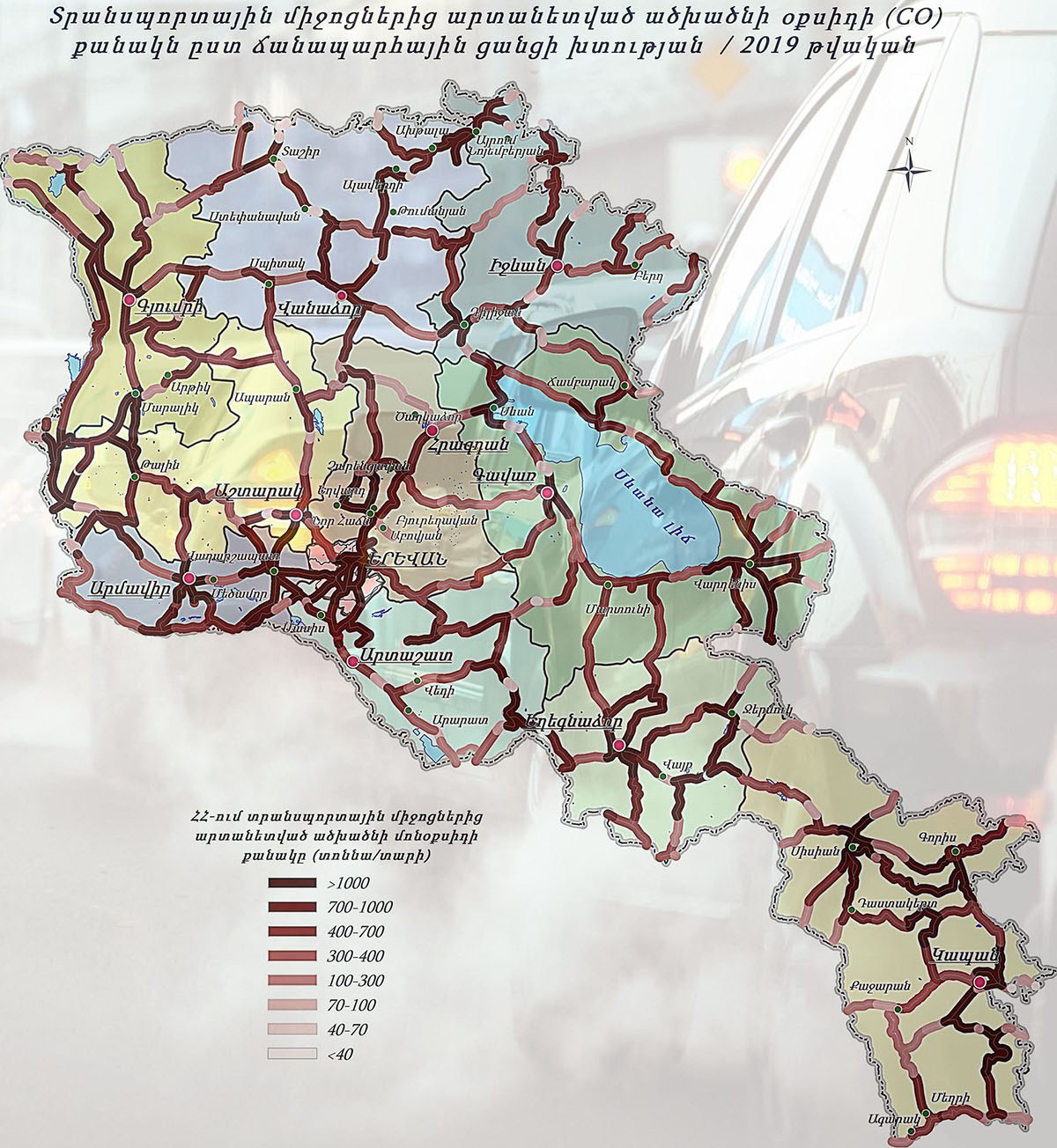 Որքան մեծ է ճանապարհային ցանցի խտությունը և մեքենաների քանակը, այնքան բարձր է ածխածնի օքսիդի արտանետումների ծավալը: