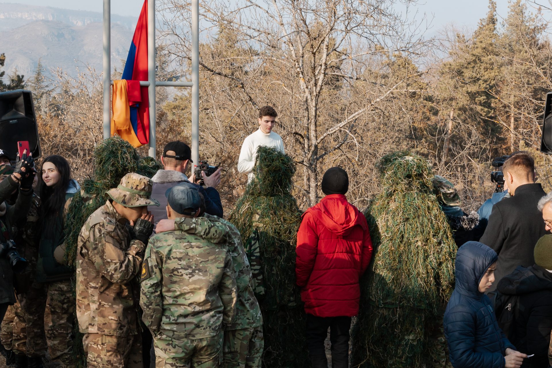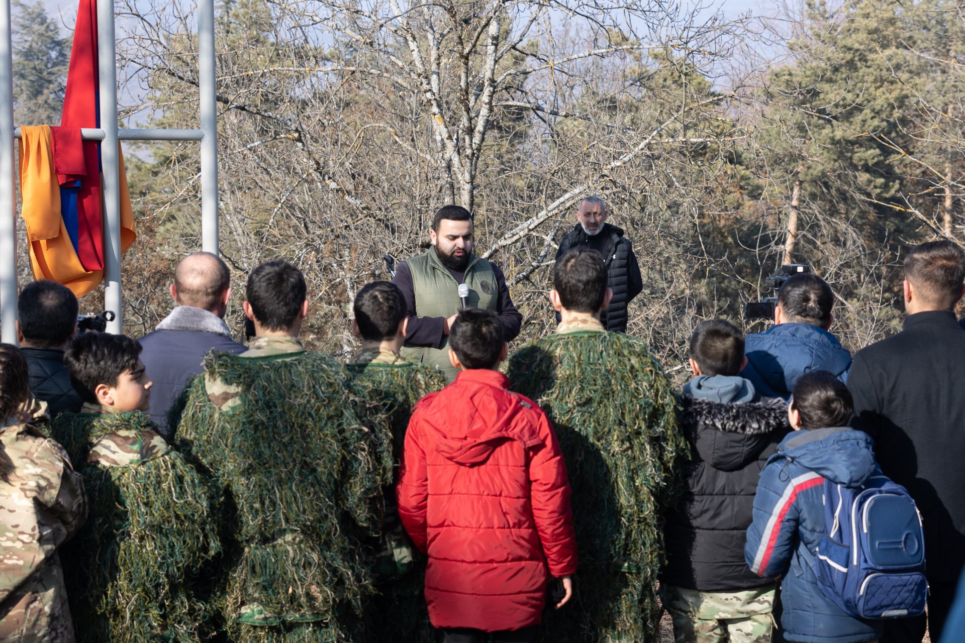 Այն նախաձեռնել էր ՀՀ ՇՄՆ «Արգելոցապարկային համալիր» ՊՈԱԿ-ը, իսկ միջոցառման գեղարվեստական մասը վստահված էր Երևանի Շառլ Ազնավուրի անվան մշակույթի և արվեստի պետական քոլեջին։ Մինչ վեր կխոյանար ՀՀ Դրոշը, Բերդ քաղաքի ամենաբարձր հատվածից հնչում էր «Ազնավուր» քոլեջի սաների ռազմահայրենասիրական երգերի կատարումները։ Ցուրտ եղանակն անտեսելով, քոլեջի ուսանող Գարիկ Սիմոնյանը հանդես եկավ «Գինի լից», Աշոտ Պետրոսյանը՝«13 արծիվներ», Արմեն Դեմիրճյանը՝ «Գետաշեն», Վահագն Կարապետյանը՝ «Եռագույն» երգերի կենդանի կատարումներով։ Միջոցառման ընթացքում «Հայ ֆիդայիններ» հայտնի երգի կատարմամբ հանդես եկավ նաև «Ազնավուր» քոլեջի դասախոս, երգիչ Սամսոն Պանյանը։ Ողջ միջոցառման կարևոր ու ոչ պակաս պատասխանատու գործը վստահված էր քոլեջի «Դերասանական արվեստ» մասնագիտության 4-րդ կուրսի ուսանող Արմեն Փանոսյանին, ով պատվով վարեց ողջ միջոցառումը։